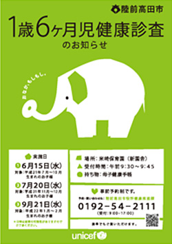 陸前高田市では、乳幼児健診ポスターを避難所や市内のコンビニなどに貼り、母子手帳を利用した乳幼児健診の再開にこぎつけた。