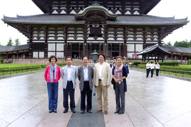 奈良の東大寺にて(李克東教授、謝幼如教授、前迫孝憲教授、 伊原和夫副理事長、笹田能美研究員)